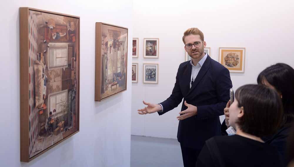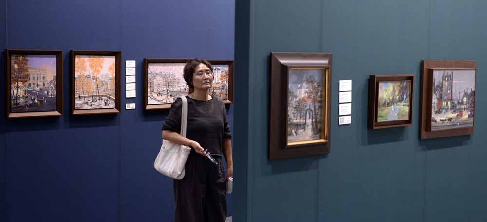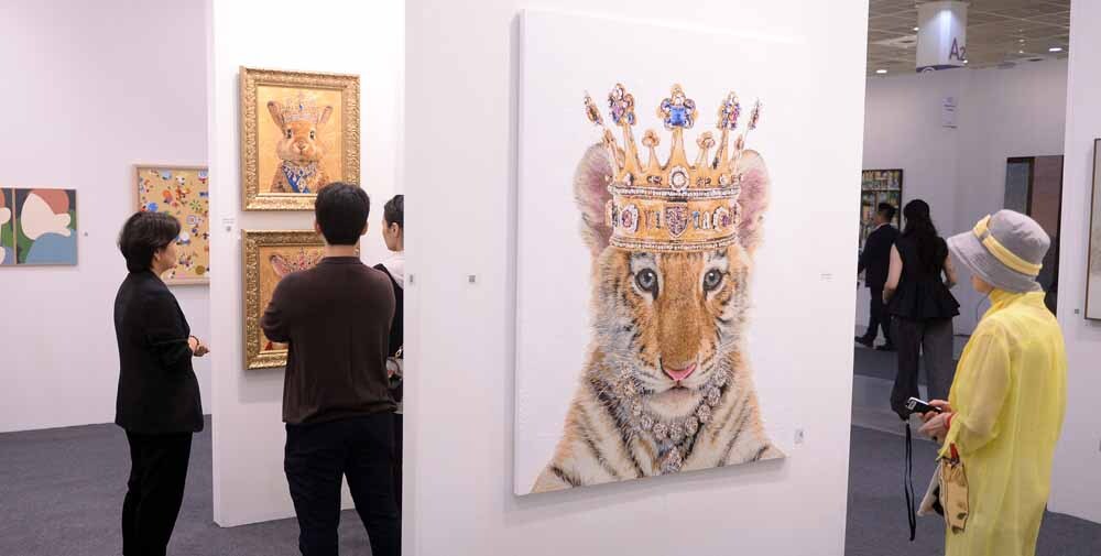3일 서울 강남구 코엑스에서 열린 아트 페어 'kiaf SEOUL'에서 관람객들이 작품을 관람하고 있다.