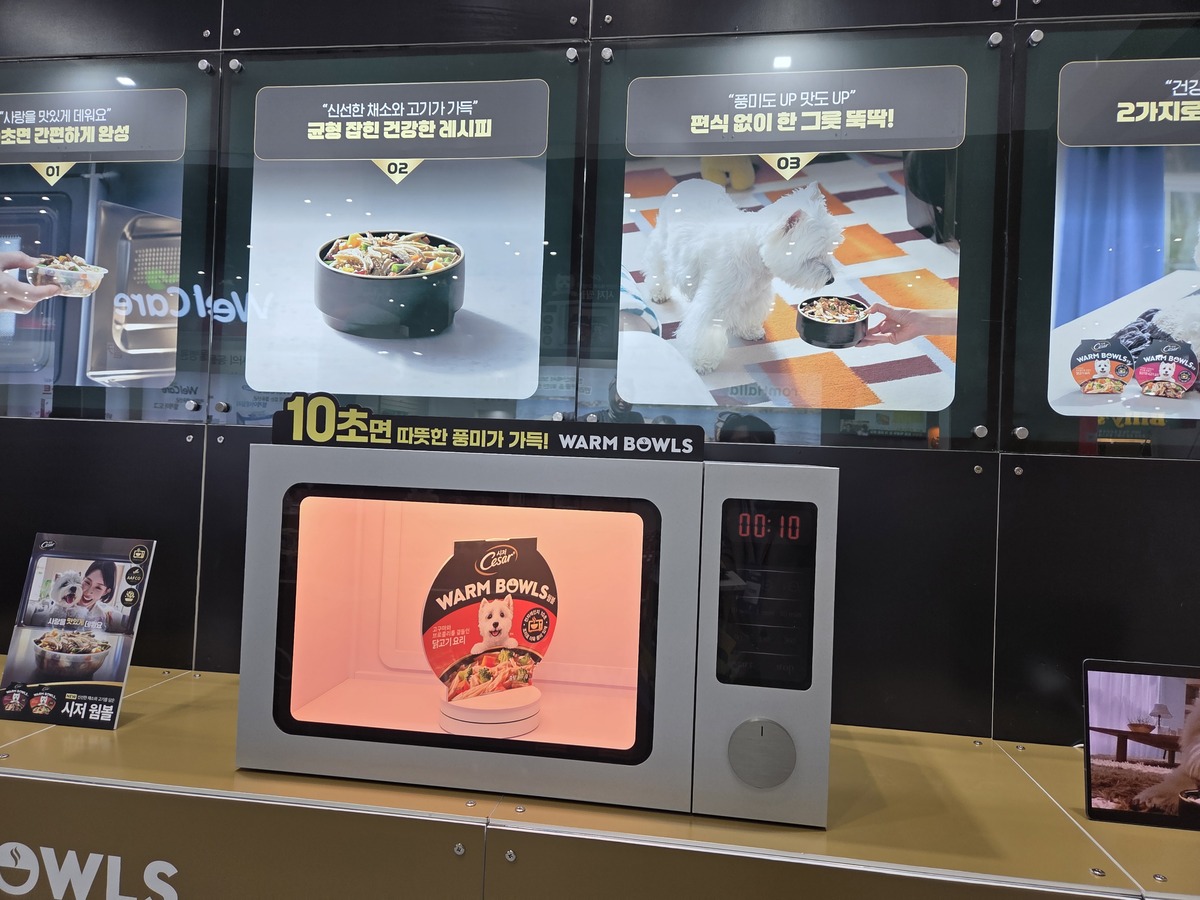 한국마즈는 데워 먹는 간편식 ‘시저 웜볼’을 알리며 전자렌지 조형물과 딱 10초만 데우면 된다는 의미를 강조하기 위한 스톱워치 10초 이벤트로 방문객들의 관심을 끌었다.