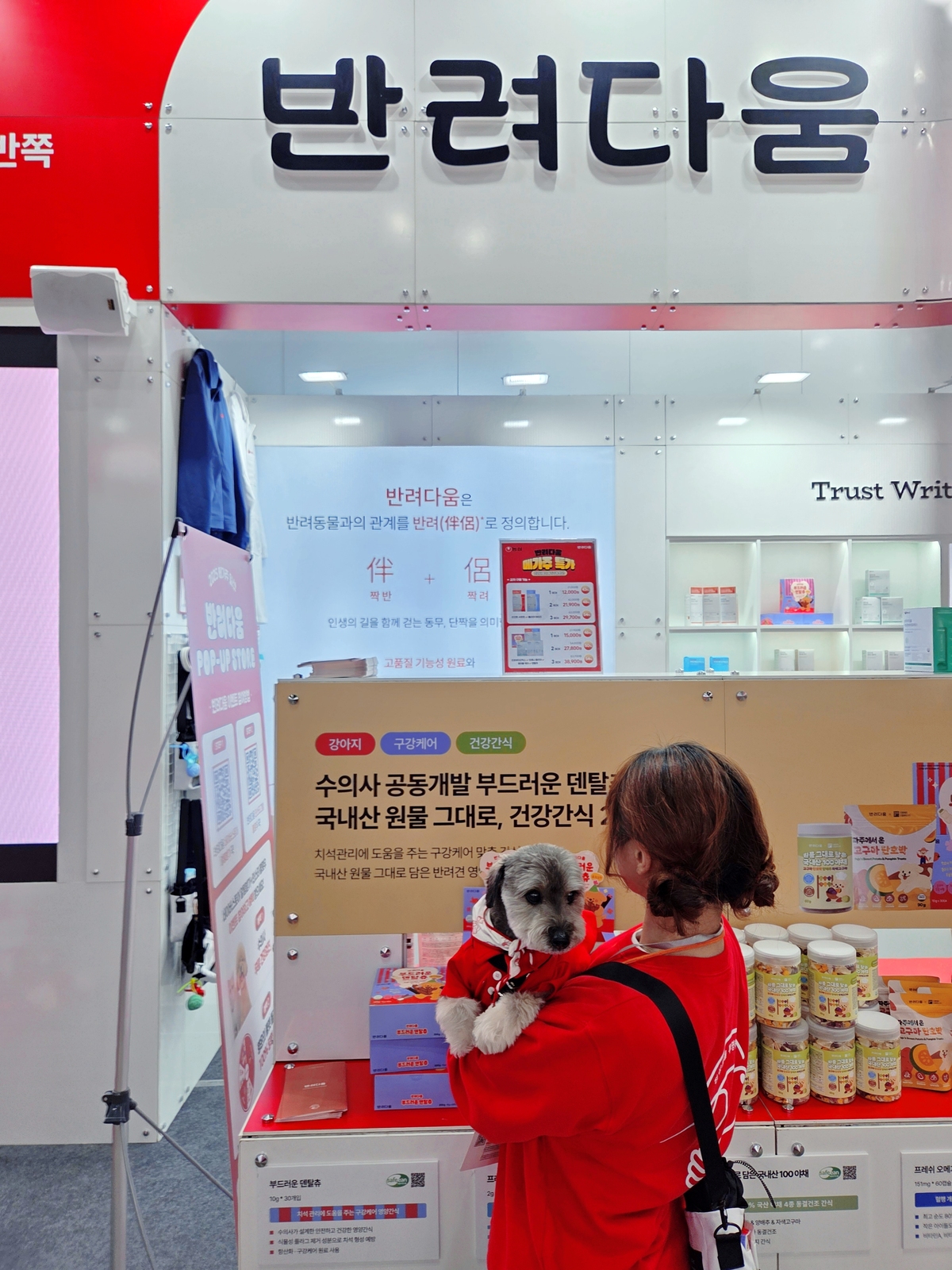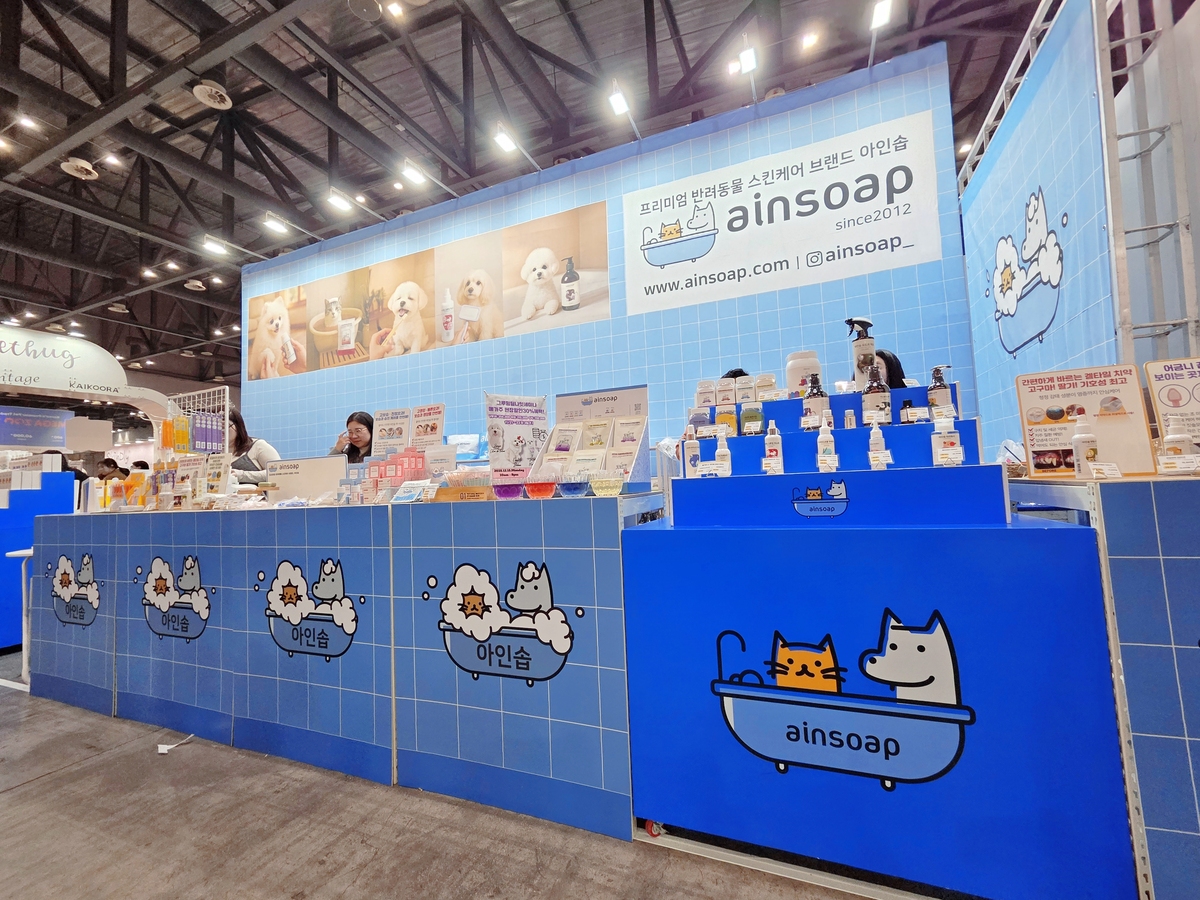 반려동물 목욕용품 업체 ‘아인솝’은 욕실 느낌이 물씬 나는 부스에서 반려가족을 맞이했다. 입욕제, 칫솔·치약, 비누, 미스트 등 다양한 제품이 진열됐고 향을 직접 느낄 수 있는 체험 공간도 있었다. 업체 관계자는 “방문객은 물론 해외 바이어들에게 우리가 어떤 회사인지를 직관적으로 보여주고자 부스를 꾸몄다”고 말했다.