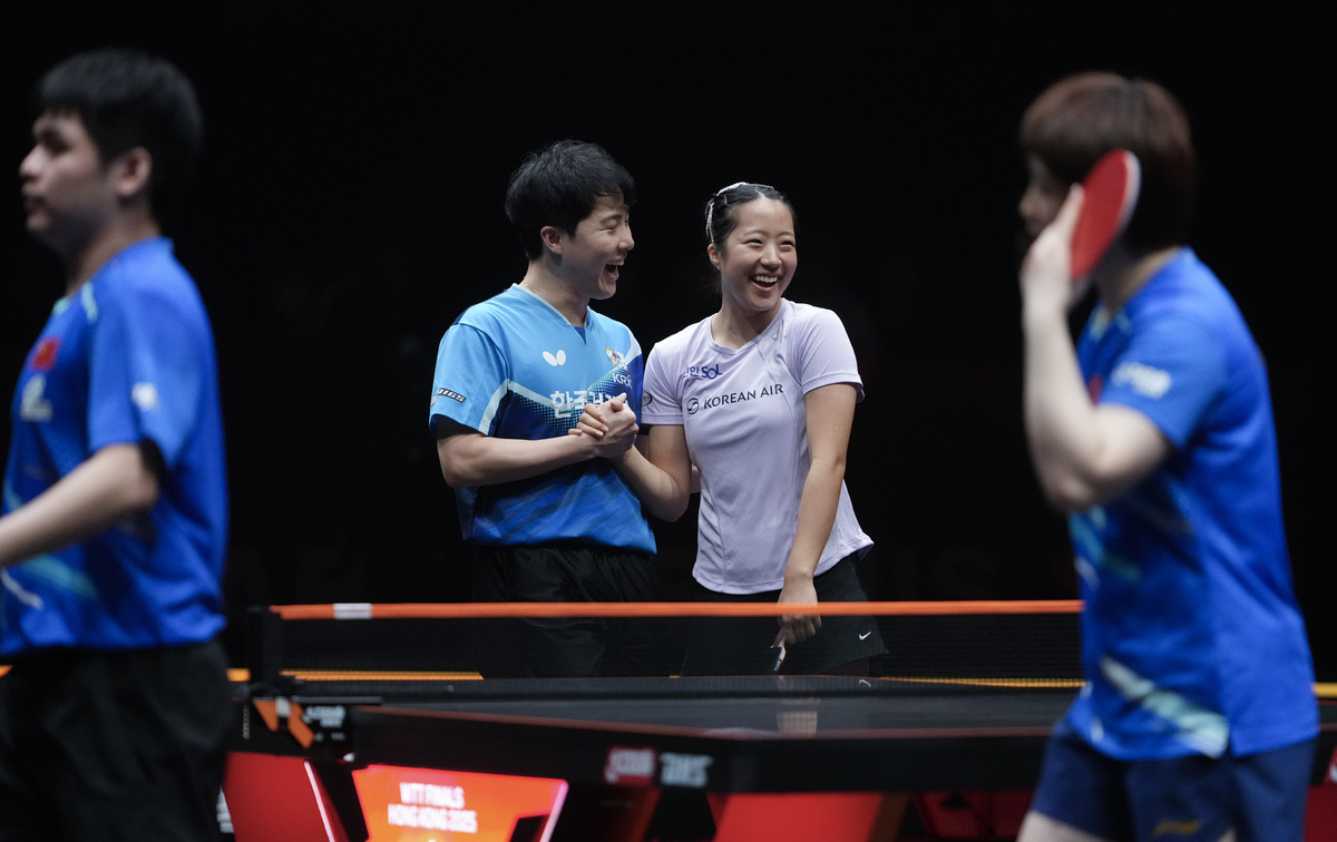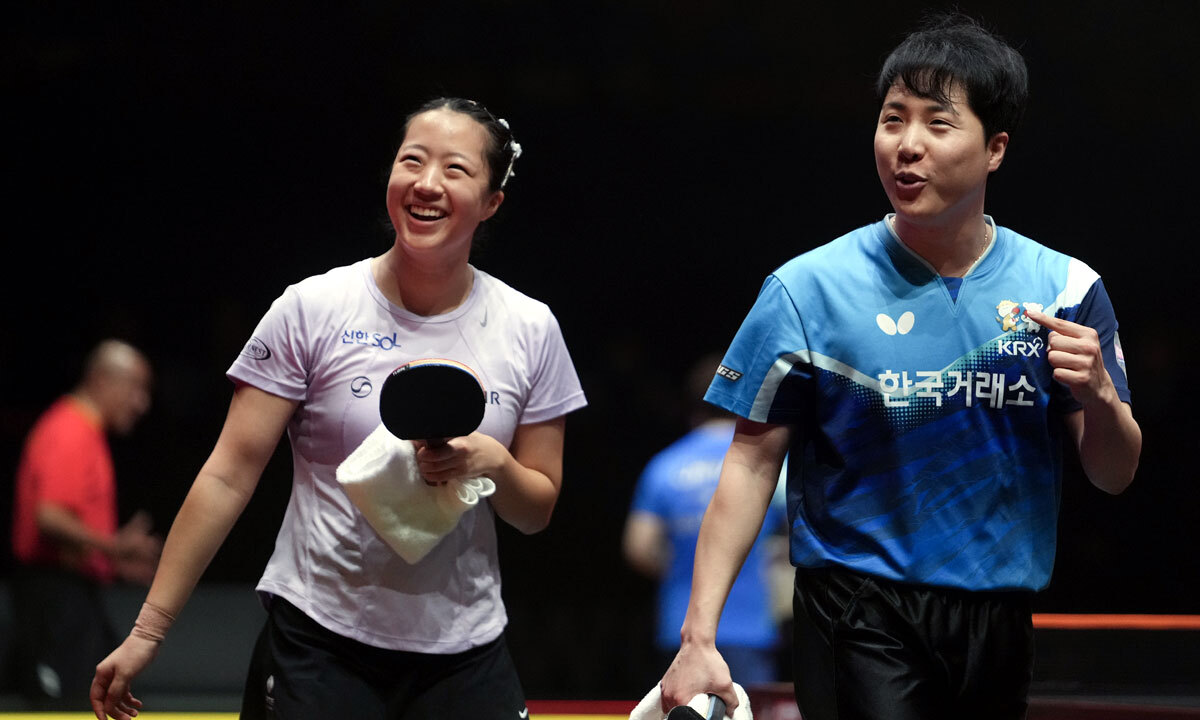 ‘세계 2위’ 임종훈(한국거래소)-신유빈(대한항공) 조가 월드테이블테니스(WTT) 파이널스 초대 챔피언에 올랐다. 임종훈-신유빈 조는 13일 홍콩에서 열린 ‘파이널스 2025’ 혼합복식 결승에서 중국의 왕추친-쑨잉사 조(세계 3위)를 게임 스코어 3-0(11-9 11-8 11-6)으로 완파했다.