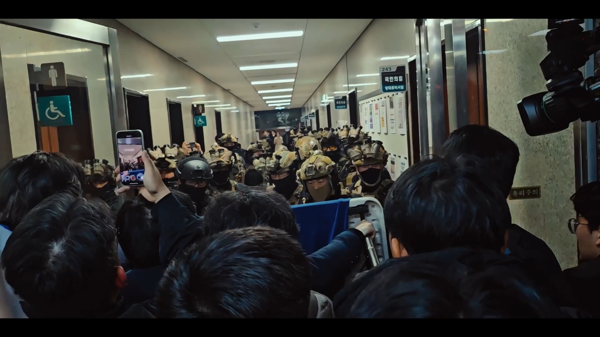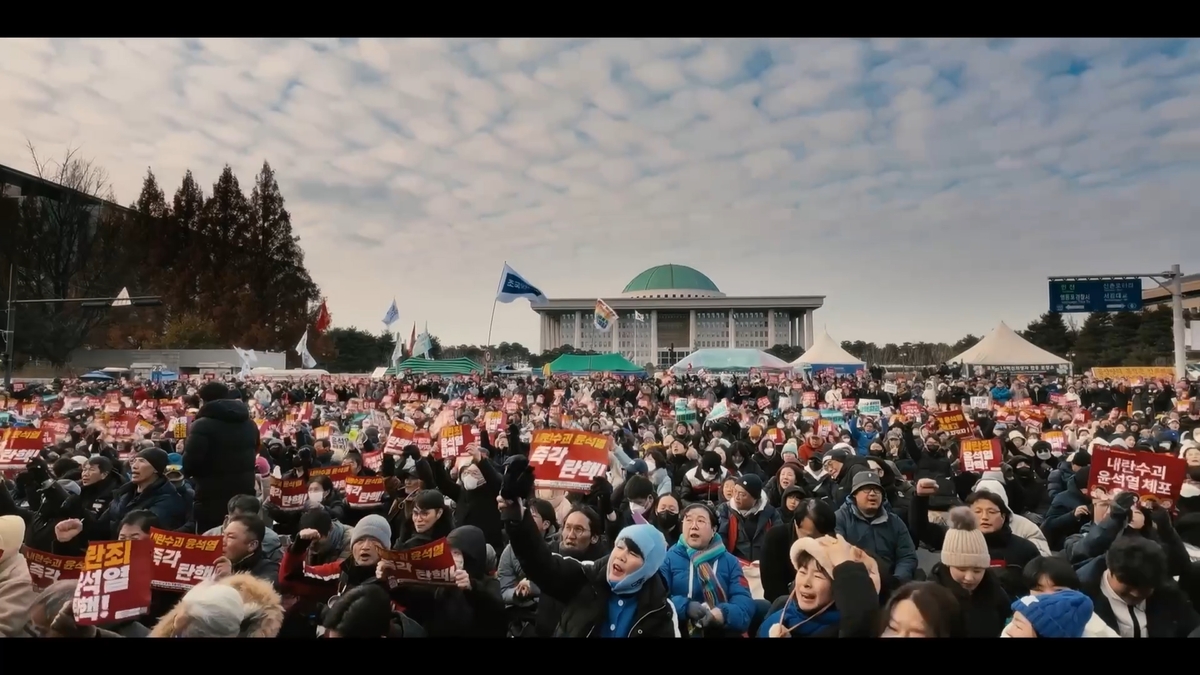 영화는 일반 시민부터 국회 보좌관까지 283명이 제공한 방대한 자료를 토대로 구성됐다. 윤석열 전 대통령의 비상계엄 선포부터 해제 결의안 가결까지의 과정을 촘촘히 따라간다. 이 감독은 “나 역시 엄혹한 시기를 살아왔다. 살아 남았다는 것에 대한 죄책감, 부끄러움 등이 밀려오는 시기가 있다. 그때마다 영화가 과연 무엇인지, 무엇을 할 수 있는가에 대한 자괴감도 들었다”면서 “나만 이런 감정을 느낀 게 아니라는 것을 시민들의 제보 영상을 보며 확신했다. 한 개인의 체험을 넘어 모두의 경험으로 확장하고자 했다”라고 설명한다.